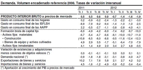 Ahora lo que dice el ine sobre el último trimestre del 2012 sobre demanda agregada: