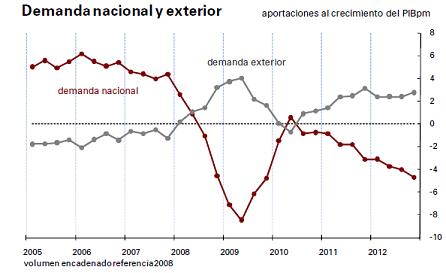 Demanda interior en descenso continuo desde segundo trimestre 2010, alguien se acuerda del 9 de mayo de 2010.